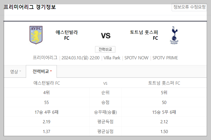 과연 손흥민의 토트넘은 아스톤빌라 구장에서 펼쳐지는 원정경기에서 어떤 결과를 얻게 될까요? 많은 기대와 함께 경기를 직접 시청해 보시면 좋을 것 같습니다.